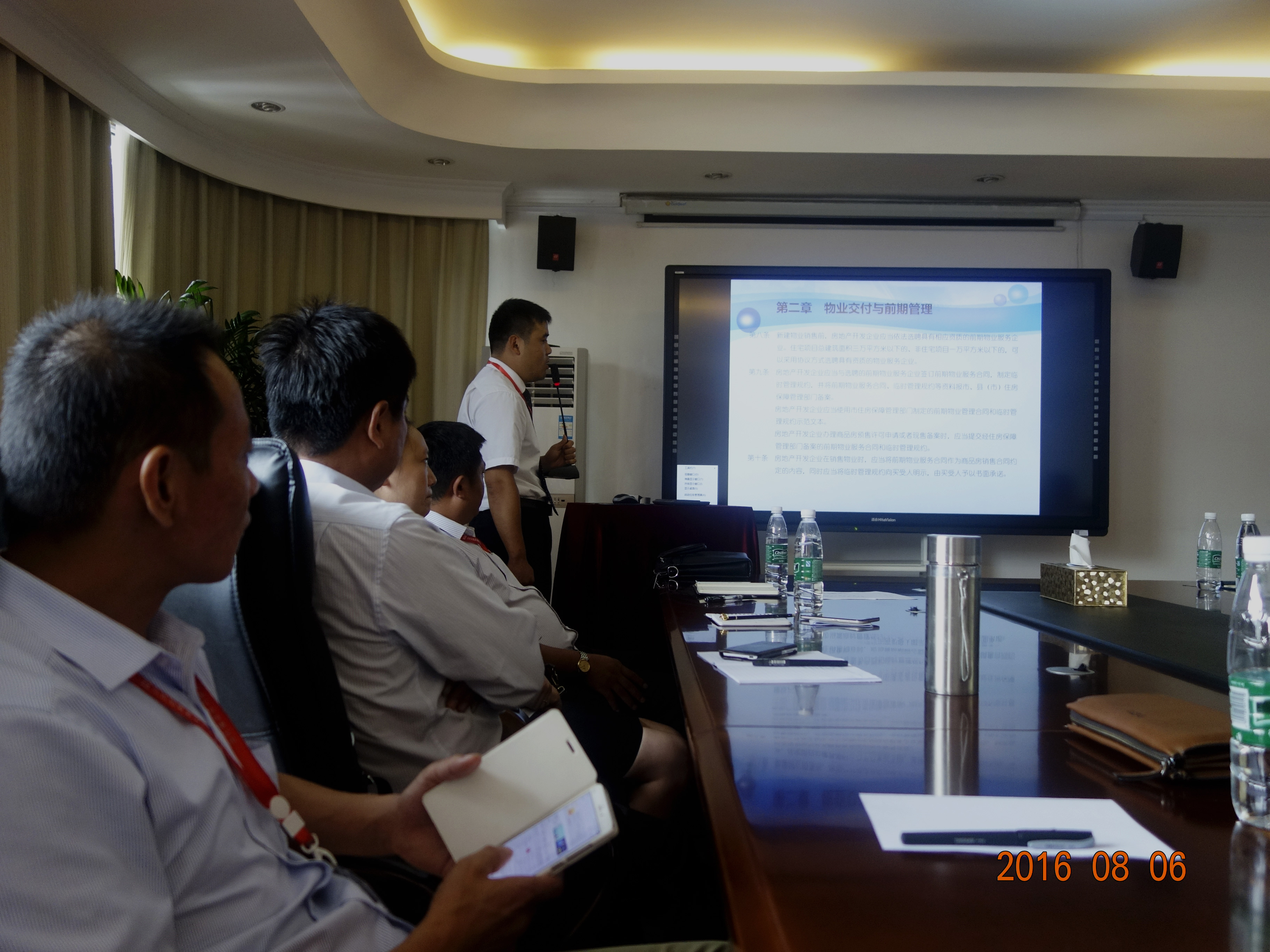 2016年8月6日中区事业二部为进一步加强物业管理的法律法规以及在物业管理实际工作中的运用,组织开展了物业管理法律法规知识的培训,此次培训由中区事业二部综合部组织,特邀请物业部经理韩伟结合实际案例讲解,中区事业二部全体管理人员参加了此次培训。