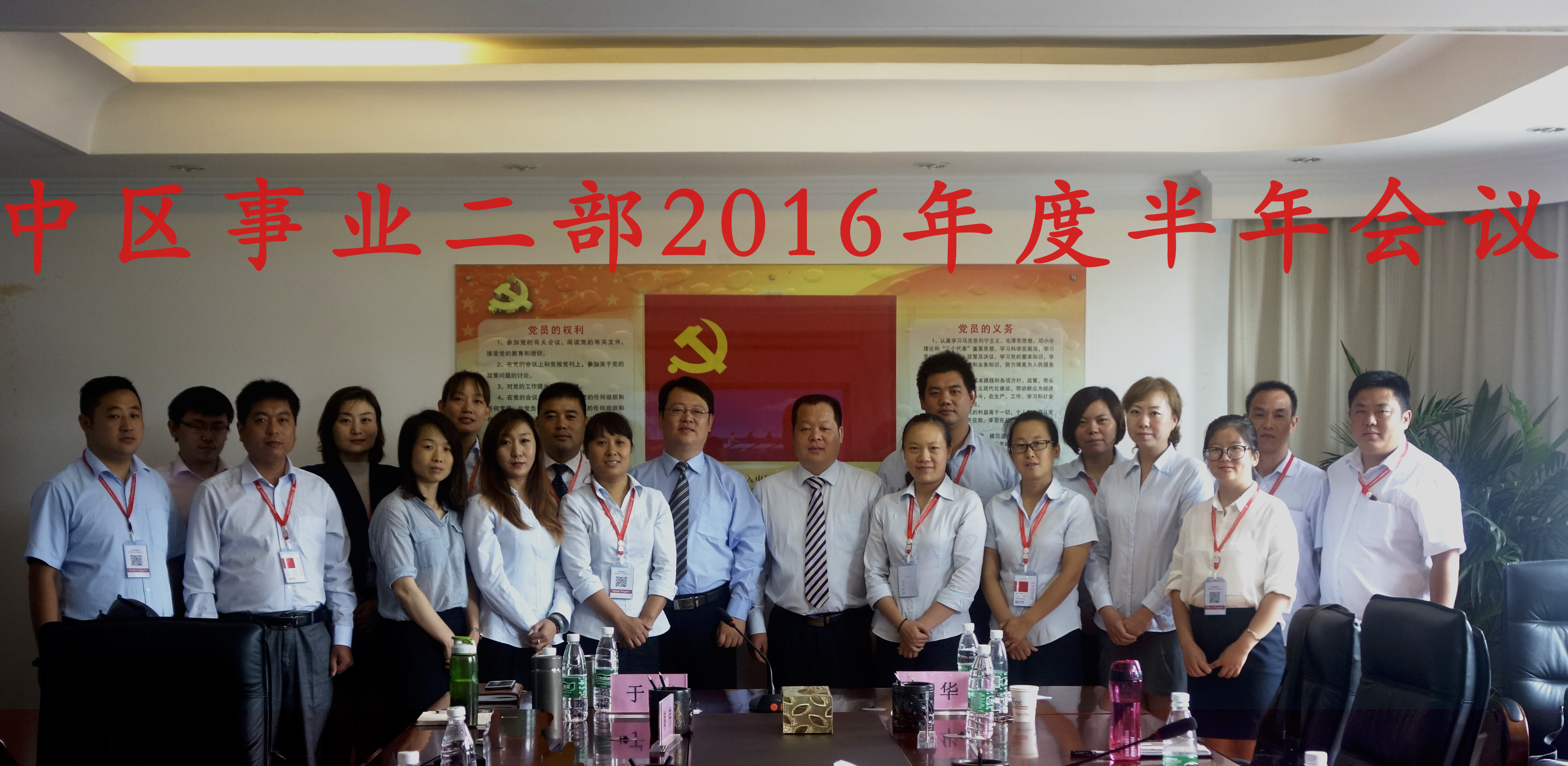 随后事业部总监赵磊、副总监张荻对监管项目做工作总结;事业部总经理于涛在市场拓展、经营管理、人事管理及培训管理等多方面对中区事业二部做2016年上半年工作总结,同时着重对事业部2016年下半年工作计划做部署,多次强调狠抓班子作风建设,彻底抛弃不良行为,切实做到“三戒”和“三强”: 戒懒散,强作风;戒玩耍,强纪律;戒不为,强责任。
