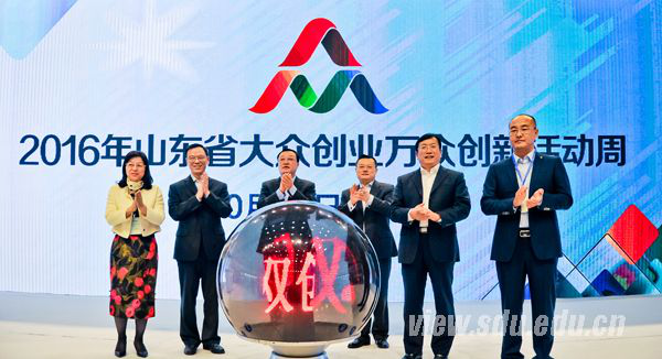 10月12日,2016年山东省大众创业万众创新活动周启动仪式在山东大学中心校区体育馆举行。山东省“双创”活动周紧扣“创新创业引领,产业优化提升”的主题,筹划举办“1+10”系列活动:“1”即主场馆活动,在山东大学中心校区体育馆举办,包含启动仪式、主题展示、专题论坛等活动;“10”指在有关高校、科研院所、协会等承办单位分别设立10个分场馆,与主场馆同步举办“双创”论坛、创业汇、学术报告等专题活动。启动仪式上,山东省副省长张务锋在讲话中指出,推进“大众创业 万众创新”是党中央、国务院在新时期作出的重大决策部署,是发展的动力之源,也是富民之道、公平之计和强国之策。山东大学校长张荣、省政府副秘书长李娥,省发改委主任王忠林等省市领导出席活动并讲话。