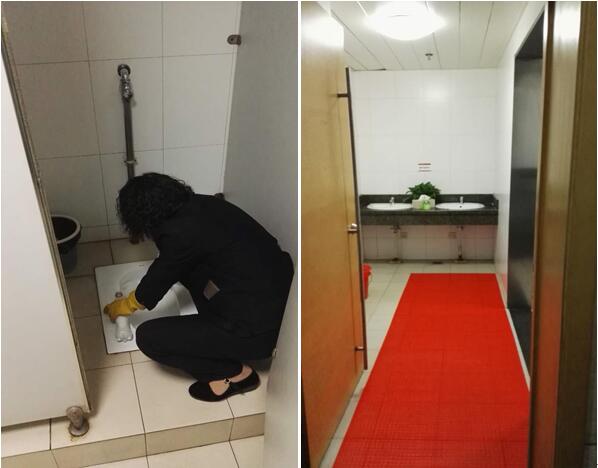 保洁人员清理、布置卫生间
