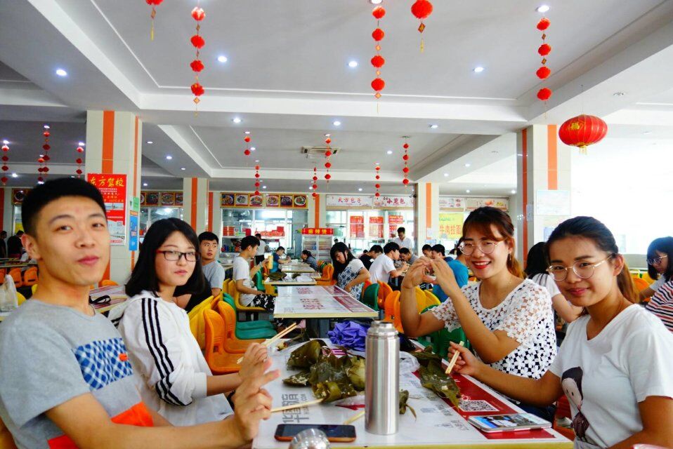 在大家的共同努力下,八百多个粽子赫然摆在了大家的眼前。中午十一点粽子出锅,由勤工俭学的同学负责分发,吃着自己亲手包的粽子,别有一番滋味。