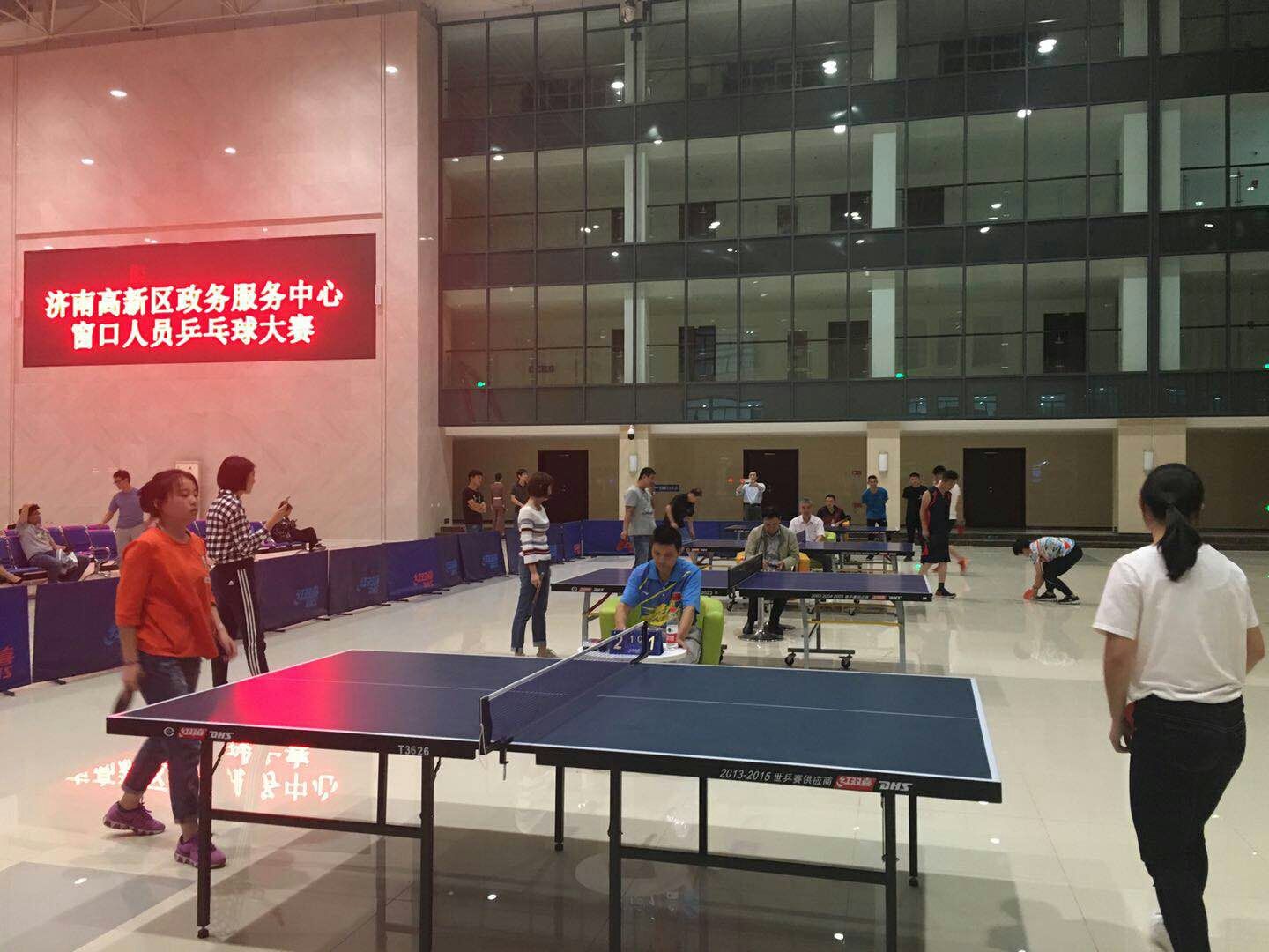为丰富窗口工作人员业余生活,增强体质,促进工作人员间的交流,高新区新政务中心项目于9月28日开展了别开生面的乒乓球比赛。此次比赛本着“友谊第一,比赛第二”的原则开展。各窗口工作人员热情非常高,报名参加比赛的工作人员近50人。