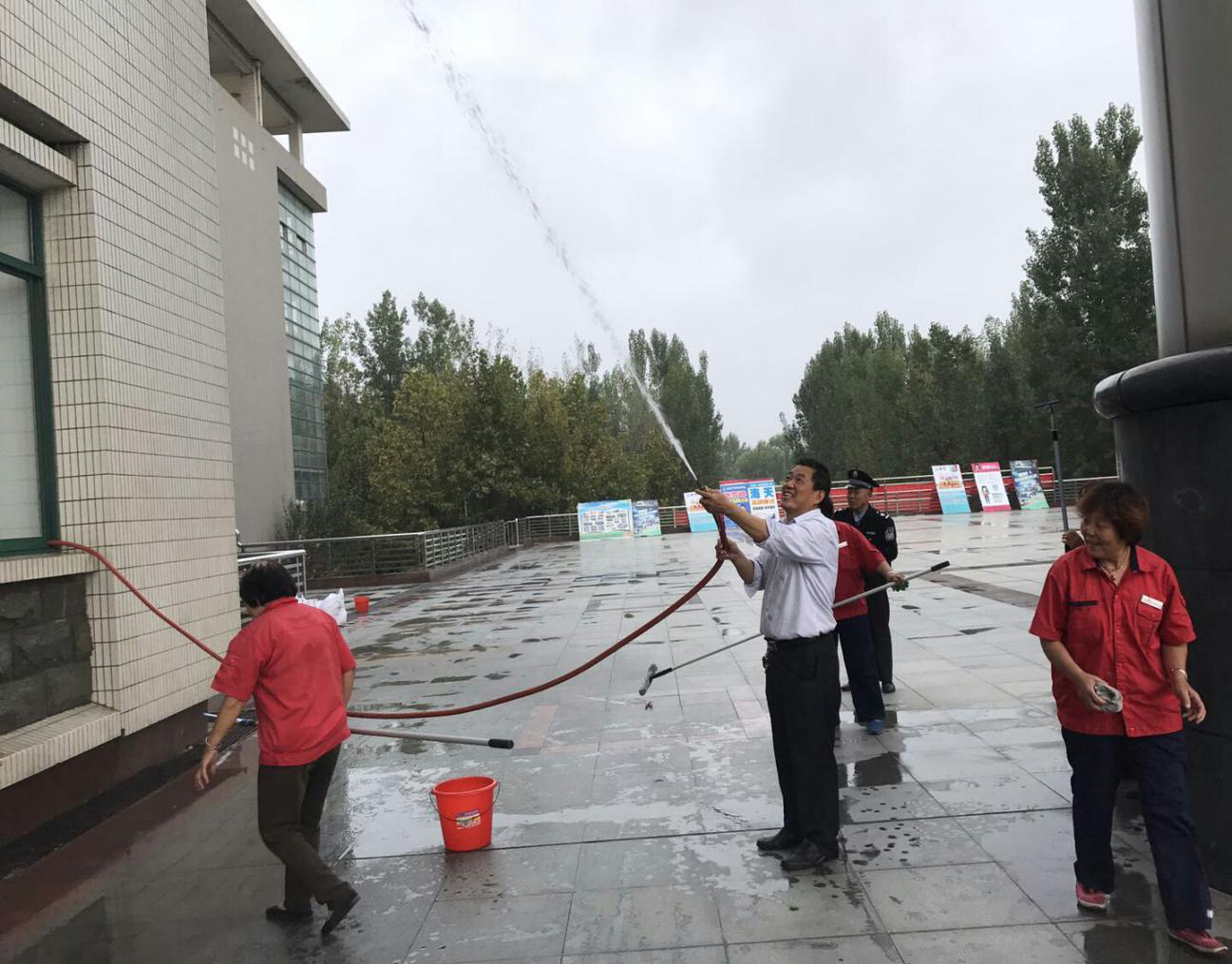 泰山医学院为申报医科大学,从暑假开始施工、维修、粉刷等各种工作接连不断,产生较多的垃圾和灰尘,给我们卫生清洁和保障带来诸多困难。项目员工任劳任怨,对自己的工作区域反复清理,包括网络线槽、暖气管道、墙面和柱子积尘等卫生死角进行冲刷擦拭,大家紧张而有序的为迎评工作奉献着我们宏泰人的智慧和力量。