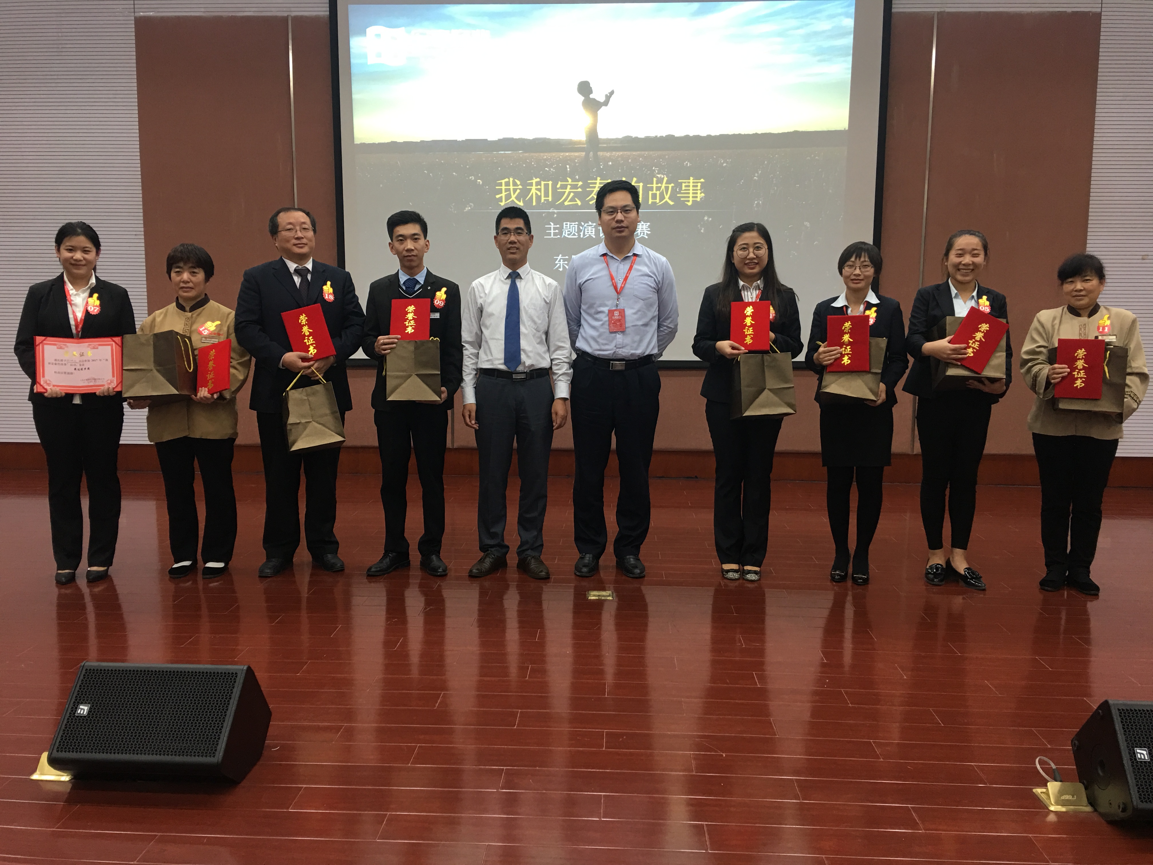 今天参加比赛的选手们,来自公司的各个岗位,都是通过初赛脱颖而出的佼佼者,他们都用最真挚的感情讲述了自己与宏泰最真实的故事,其中不乏个人的精彩蜕变、菜鸟的华丽变身:最感动故事得奖者薛天芝阿姨讲述了她从一名家庭主妇到职场小领导的转变;最爱岗敬业奖高成霞阿姨讲述了自己在职场中从人工作业转变成机械化作业的小能手的故事,体现出机械化作业对员工职场的影响;刚踏出校园的赵鸣辰同志讲述了自己从青涩的职场小白到脱颖而出成为得力小助手的转变和进步;还有从小清新女生转变成职场“白骨精”的杨鑫钰,从一名小小的客服到能顶大半个工程维修师傅的徐丽等等。