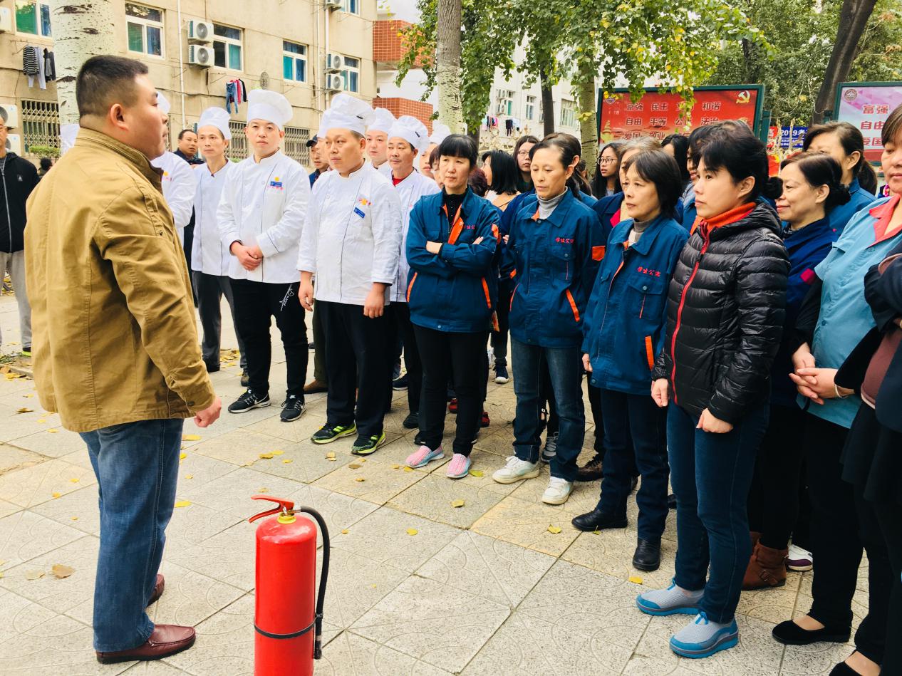 11月9日上午8:30分,山东大学洪家楼校区项目全体工作人员和食堂厨师、学生等在国政楼前集合,共同参与学习了消防培训演练。
