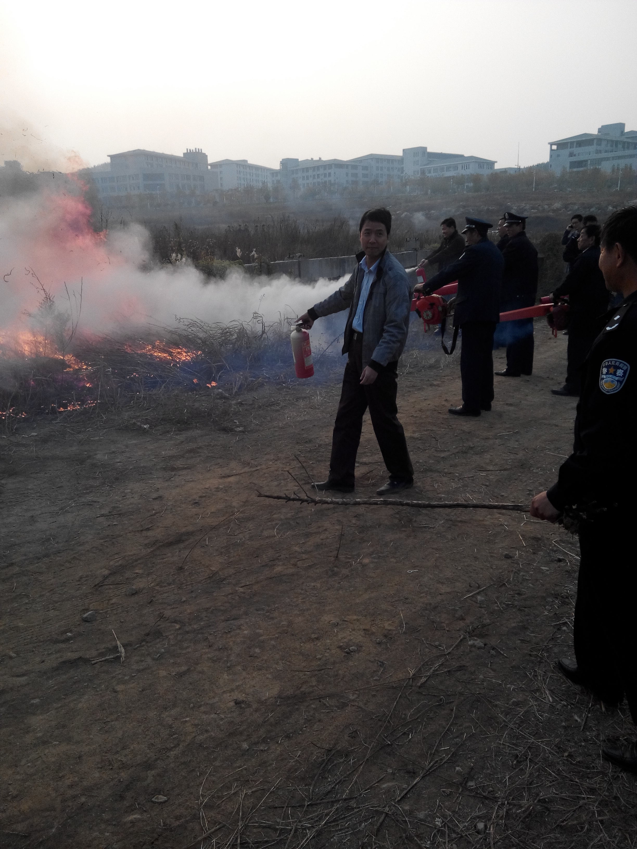 下午15:00,保卫处石处长进行活动动员,保卫处邵科长讲解灭火器使用知识,我公司高队长讲解灭火风机使用知识。全体人员到达活动地点,石处长命令点火,全员用灭火器、灭火风机进行灭火,整个演习过程井井有条。16:05演习活动结束,取得圆满成功。