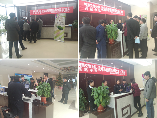 为了方便业户查询、办理机动车驾驶证等方面的相关业务,我物业公司特邀槐荫交警大队西客站中队车管所工作人员,于2015年1月15日上午09:30,在西城大厦一层大厅开展流动车管所上门服务活动,现场办理补领、换领机动车驾驶证以及机动车违章查询等业务,并为前来咨询的业户进行现场答疑。