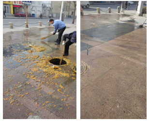 2015年3月20日,与往常的日子一样,天津悦荟保洁服务项目的刘文胜经理又早早到了项目现场。巡视过程中在广场影城侧发现因外管网跑水,造成大面积的化粪池清淤物。