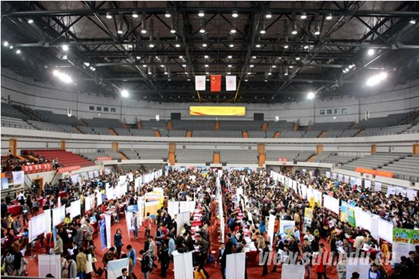 3月28日,山东大学2015届毕业生就业春季双选会在中心校区体育馆举行,会场包括体育馆内一层、二层、三层以及体育馆外围共四个展区,本次双选会是今年上半年学校举办的最大的一场双选会,共有来自20多个省份的630多家用人单位和来自山大及省内外其他高校的万余名学生参加。