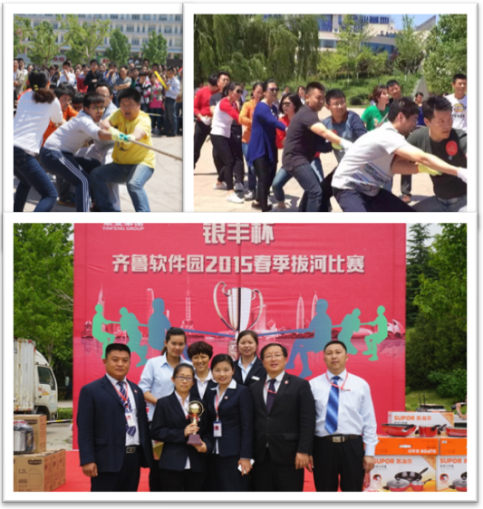 为丰富园区企业的文化生活,完善园区精神文明建设。2015年5月12日至14日由齐鲁软件园发展中心及山东宏泰物业发展有限公司联合银丰集团在齐鲁软件园下沉广场举办了一场别开生面的拔河比赛。园区企业纷纷以极大的热情参与到本次活动当中。