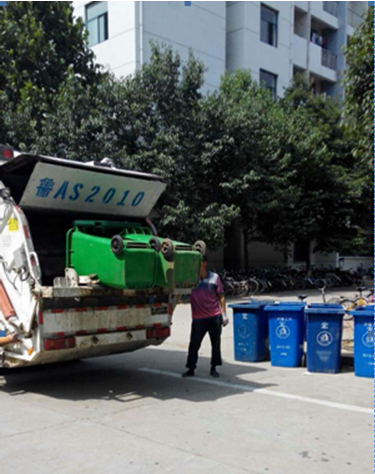自2015年6月1日起,齐鲁工业大学项目物业与长清环卫局合作,清运校园内垃圾桶垃圾。试运行一个星期以来,我物业人员每天带领垃圾清运车在校园内熟悉预定的路线,以及各个垃圾桶的停放站点。每天清理垃圾2遍,500余桶,共计20多吨。使校园内垃圾安全快捷的运出校园,大大提高了我物业的工作效率,创建了学校整洁舒心的学习环境。