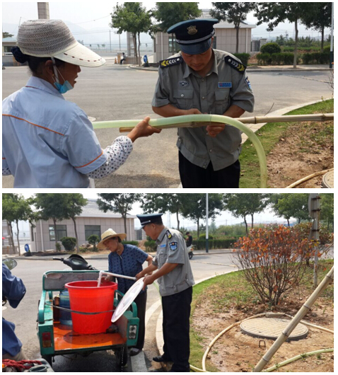 持续高温天气,造成横沟村大面积干旱,村里的水井又出现倒塌,造成村民用水荒。陆续有村民来学院打水,项目征得学院领导同意后,在校大门内绿化带安装临时取水设施。并安排人员,为村民义务提供帮助。