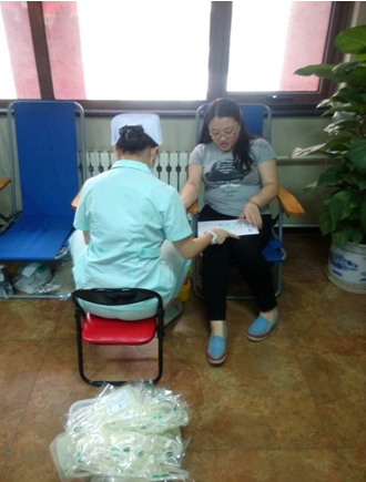 2015年8月18日清晨,朝外街道社区服务站,在相关社区工作人员及通州区血液中心医护人员的协作下,我分公司祥业大厦员工积极参与到了献血的行列中,为他人献出了自己的一份爱心,我们的行为得到了血站及社区工作人员的一致好评。作为宏泰的一员,我们每个人都应该向这些用爱心为我们塑造形象的同事们学习,学习他们热心奉献,热情服务的精神。