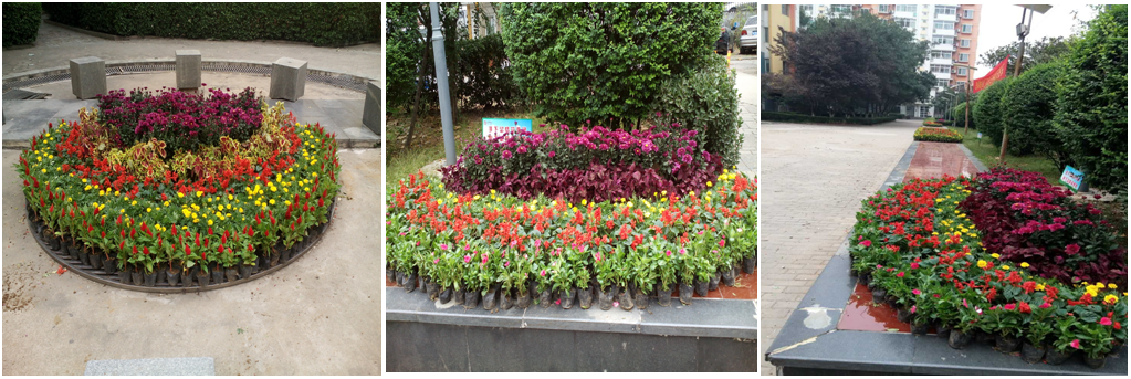 此次花卉布置由专业花卉公司进行布置,为保证节日期间花卉正常的摆放及鲜艳,项目放置了爱护花草标示,每天保证浇灌一遍水,将此花卉景观延续至国庆结束。