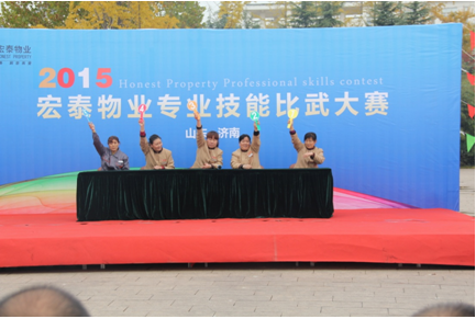 2015年 11月14日上午10时整,山东宏泰物业发展有限公司“2015年度技能比武大赛”在创业广场拉开了帷幕。公司总裁韩玉峰、总部及各事业部、分公司管理人员应邀出席。此次大赛也有幸的邀请到了公司“校企合作院校”城建学院的师生参与,进一步加强学习交流。
