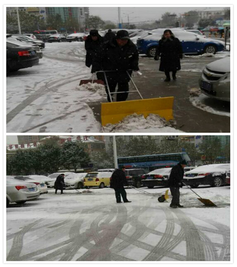 经过一个多小时的努力,终于将所有积雪和冰块清理完毕,保证了车场上的进出口车辆的安全,所有员工心里也是无比的欣慰。