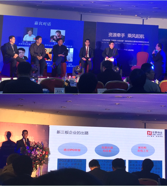 1月9日,由山东省物业管理供应商联盟主办,山东省房地产业协会和济南市物业管理行业协会参与指导的山东省首届“互联网+社区经营”创新发展论坛暨物业管理供应商大会在山东济南颐正大厦举办。山东省房地产业协会第五届理事会会长赵雷、济南市物业管理协会会长张平、秘书长赵明、知名物业管理专家舒可心、公司总裁韩玉峰及其他多家物业企业代表应邀出席此次论坛。