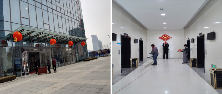 新年的钟声即将敲响,我公司西城大厦项目为增加节日气氛,让大厦进出人员感受到春节的气息,2016年1月30日我项目员工为大厦悬挂灯笼及中国结。