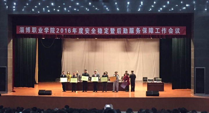 3月8日下午淄博职业学院召开2016年度安全稳定暨后勤服务保障工作会议,会议总结2015年安全稳定和后勤服务保障工作,部署2016年安全工作及后勤保障工作任务。我公司荣获2015年度安全稳定、后勤保障 “先进集体”的荣誉称号并授牌,我公司安新太总经理上台领奖。