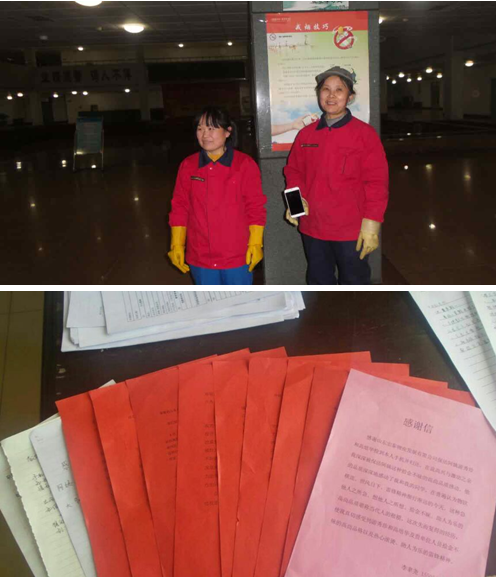 将丢失的钱包手机交还给丢失的同学时,同学一边感谢的说着话语,一边也在责怪自己的粗心,满怀感谢的将一份鲜红的感谢信送至值班室,并且当面感谢了我们的保洁员工。